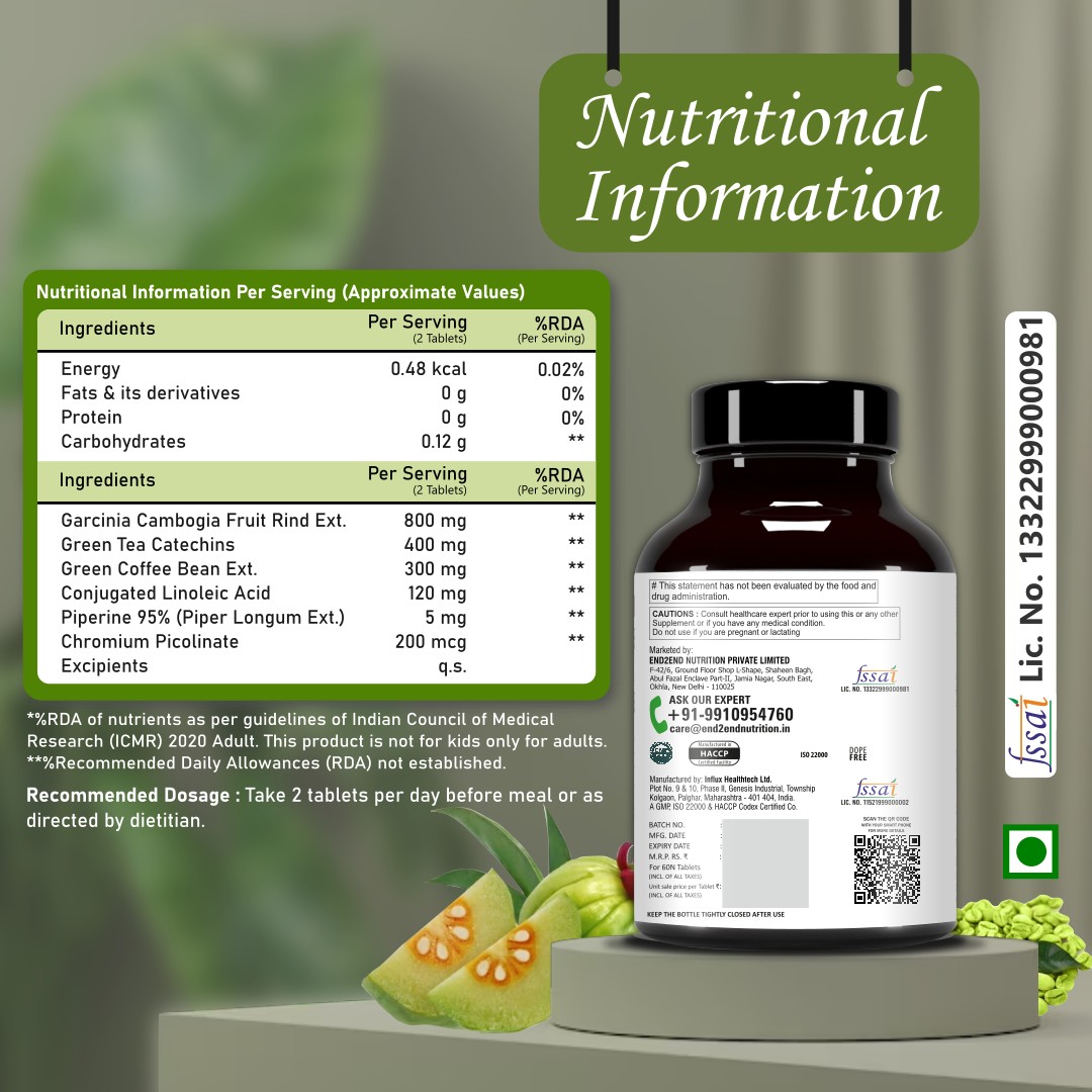 End2End Nutrition Keto Cutz fat burner with Garcinia Cambogia, Green Tea, Green Coffee Bean | Weight Manage Product for Men and Women – 60 Tablets